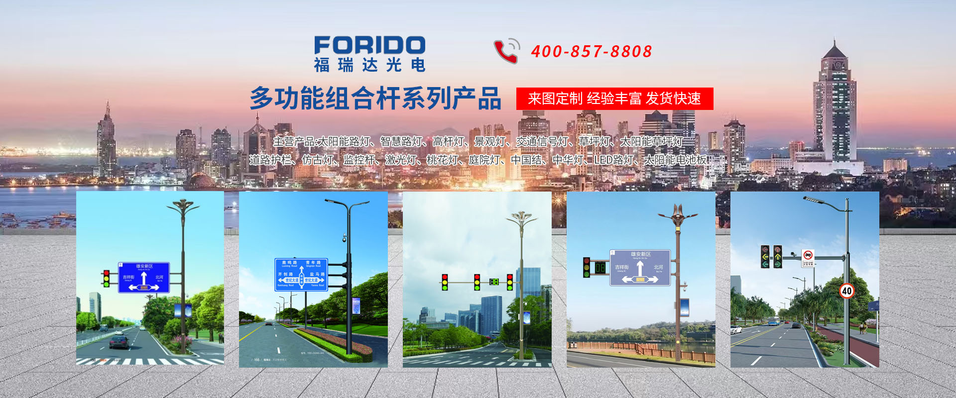 揚州福瑞達光電科技有限公司位于淮左名都歷史文化名城、中國路燈制造基地揚州市北郊菱塘工業(yè)園,公司占地面積76000平方米,注冊資金10518萬元,擁有高級技術(shù)嫻熟的員工280多人,擁有大型折彎機、激光切割、數(shù)控注塑機、壓鑄機、自動埋弧焊、氣焊、彩色粉末靜電噴塑等大型自動化設(shè)備,我公司是一家集設(shè)計、研發(fā)、生產(chǎn)、銷售、施工安裝服務(wù)為一體的戶外交通照明產(chǎn)品制造商,主要生產(chǎn)智慧路燈、太陽能路燈、LED路燈、高桿燈、景觀燈、交通信號燈、交通標志牌、通信鐵塔、路跨鋼結(jié)構(gòu)、公交站臺、太陽能光伏組件、景點亮化、樓宇亮化工程的設(shè)計施工等。公司秉承開拓創(chuàng)新、銳意進取、精誠服務(wù)的企業(yè)精神,堅持以“誠信為本、技術(shù)為先、服務(wù)是金”的合作理念,我們憑借先進的制造工藝、優(yōu)質(zhì)的產(chǎn)品質(zhì)量、合理的市場價格和完善的售后服務(wù)贏得了廣闊的市場和客戶的信賴。  我公司已通過ISO9001質(zhì)量體系認證、ISO14001環(huán)境管理體認證,CQC產(chǎn)品認證,中國節(jié)能產(chǎn)品認證,通過“CCC”強制性產(chǎn)品認證,具有市政總承包,照明,交安,設(shè)計等資質(zhì)···